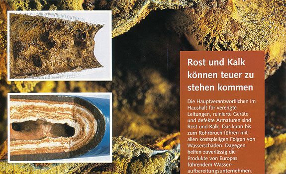 Oft besteht in Hauswasserinstallationen neben dem Kalkproblem auch ein Korrosionsproblem. Rostige Leitungen stellen einen guten Nährboden für Bakterien dar. Auch hier können wir eine Vielzahl von Produkten zum Schutz Ihrer Rohrleitungen anbieten. -