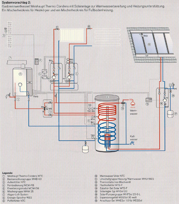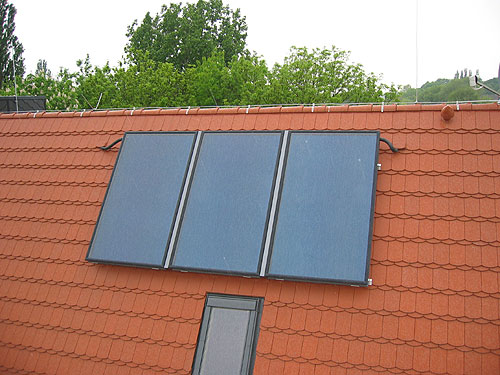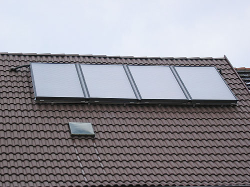 Reicht die Sonneneinstrahlung nicht aus, zum Beispiel im Winter, erfolgt eine Nacherwärmung durch den Heizkessel.