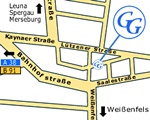 ... zu unserem Unternehmen erfolgt über die A 9 (München-Berlin) bis zum nahe gelegenen Autobahnkreuz "Rippachtal", wo Sie auf die A 38 (Leipzig-Göttingen) in Richtung Göttingen wechseln.Auf der A 38 fahrend nehmen Sie die nächste Anschlußstelle Leuna in Richtung Leuna/Merseburg auf die B 91.