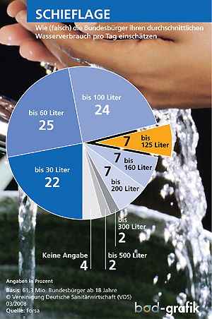 Das zeigt eine Forsa-Umfrage, in der lediglich 7 %der befragten Deutschen ihren täglichen Wasserverbrauch realistisch einschätzten.