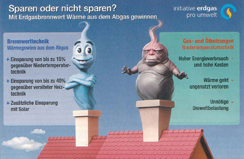 Alte Heizkessel verbrauchen viel zu viel Energie - durch Auskühl-, Bereitschafts- und Oberflächenverluste und durch "heiße Luft", die ungenutzt zum Schornstein rausgeht.Das geht auch anders: Mit einer neuen Heizungsanlage sparen Sie bis zu 30%, mit einem Gas- Brennwertgerät sogar bis zu 40% Ihrer Energiekosten.