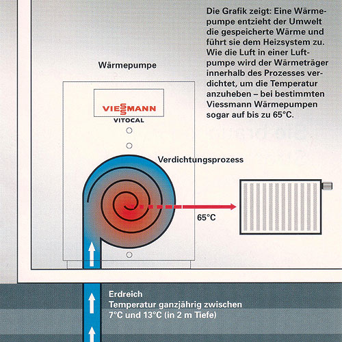 Bei einem Kühlschrank wird die Wärme von innen nach außen geleitet. Bei einer Wärmepumpe funktioniert das genau umgekehrt.Wärmepumpen nutzen geschickt das Energiepotenzial, das uns die Umwelt kostenlos zur Verfügung stellt. Über Wärmetauscher wird die Energie, die im Erdreich, in der Luft und im Grundwasser vorhanden ist, in Heizwärme umgewandelt. Die gewonnene Heizenergie kann somit zum Heizen und zur Warmwasserbereitung eingesetzt werden. Ein geniales System!